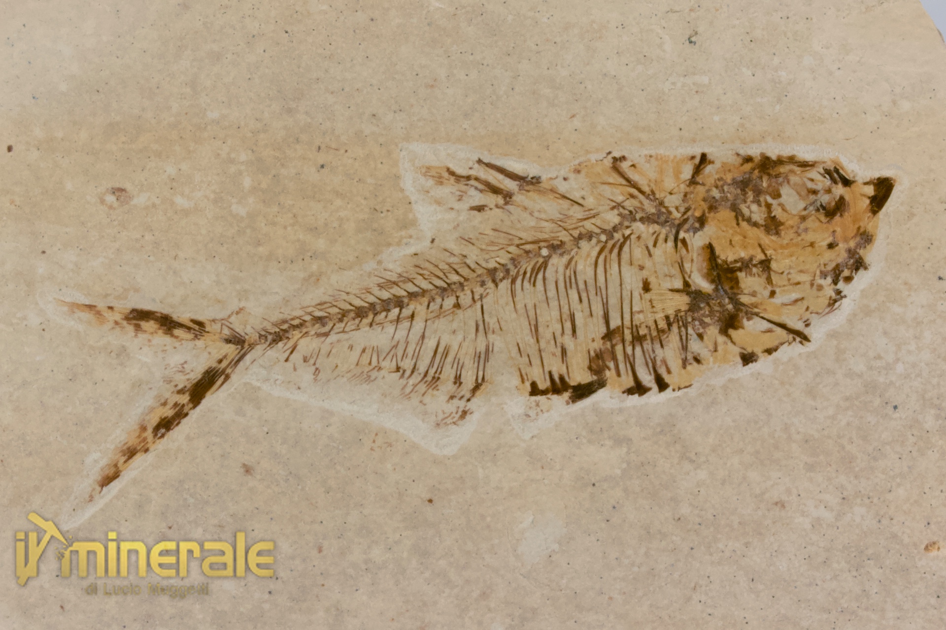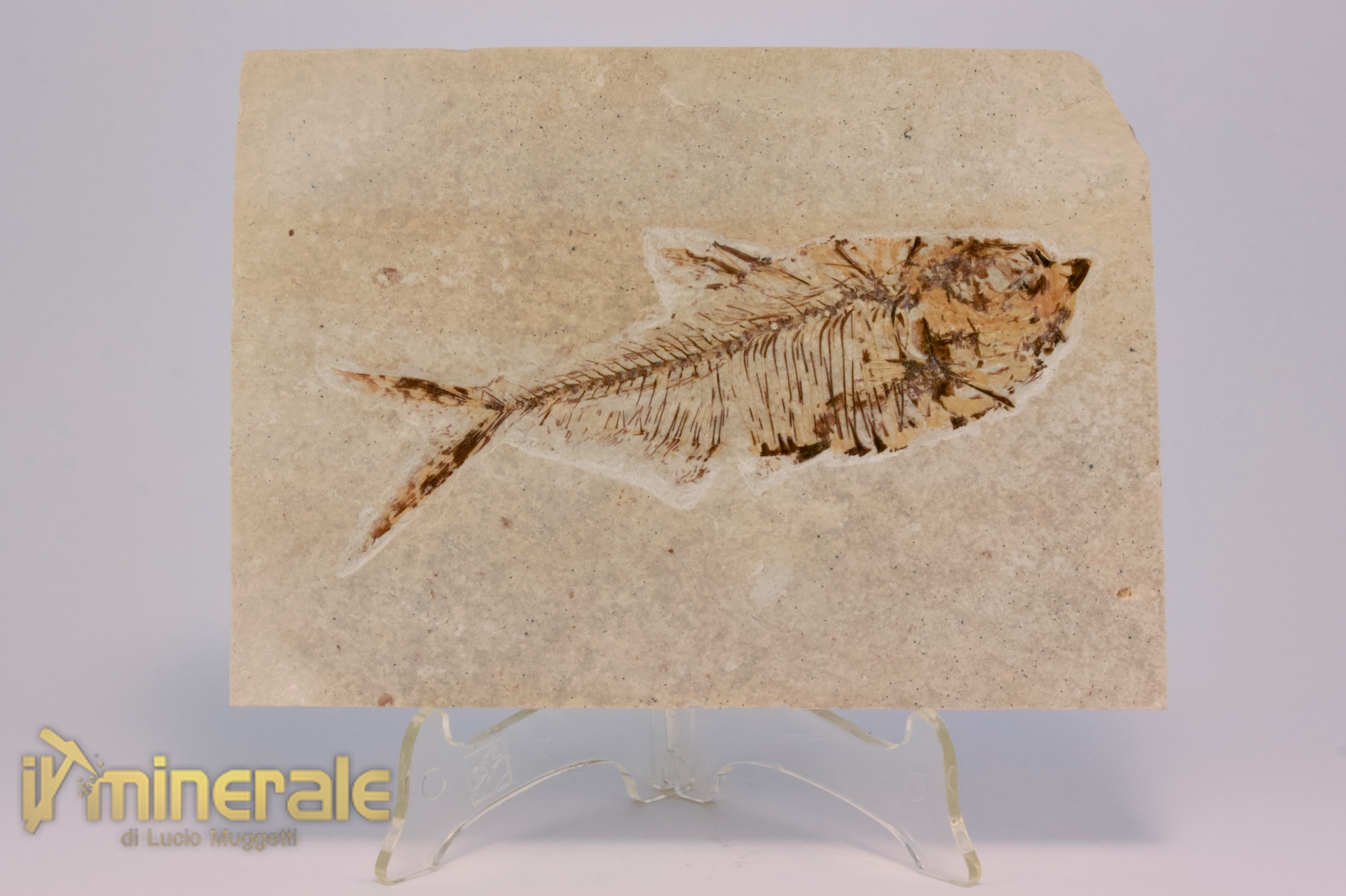 Pesce fossile "Diplomistus dentatus"; la lastra è intera, nessun restauro.