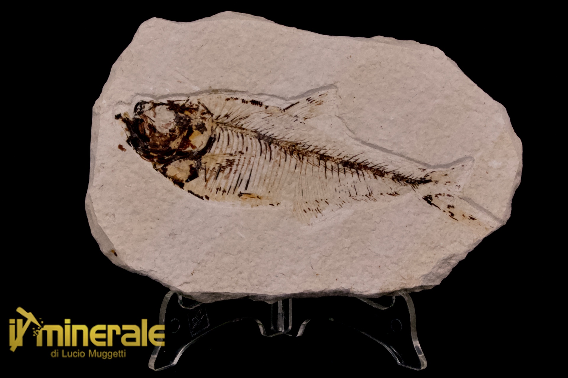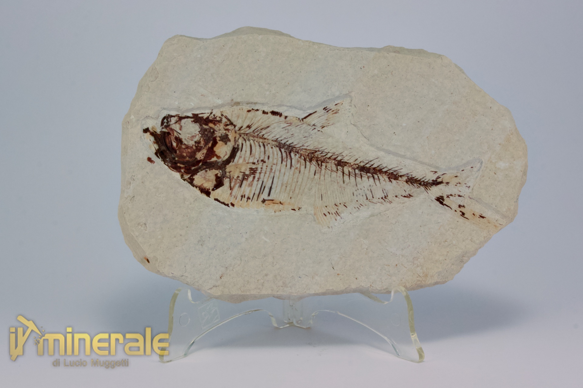 Pesce fossile "Diplomistus dentatus"; la lastra è intera, nessun restauro.