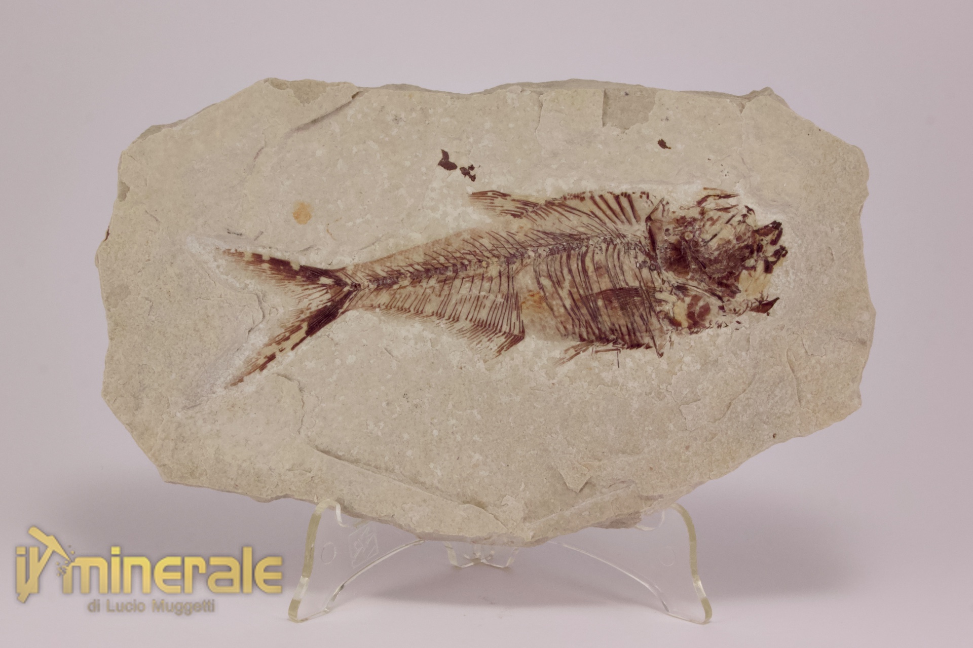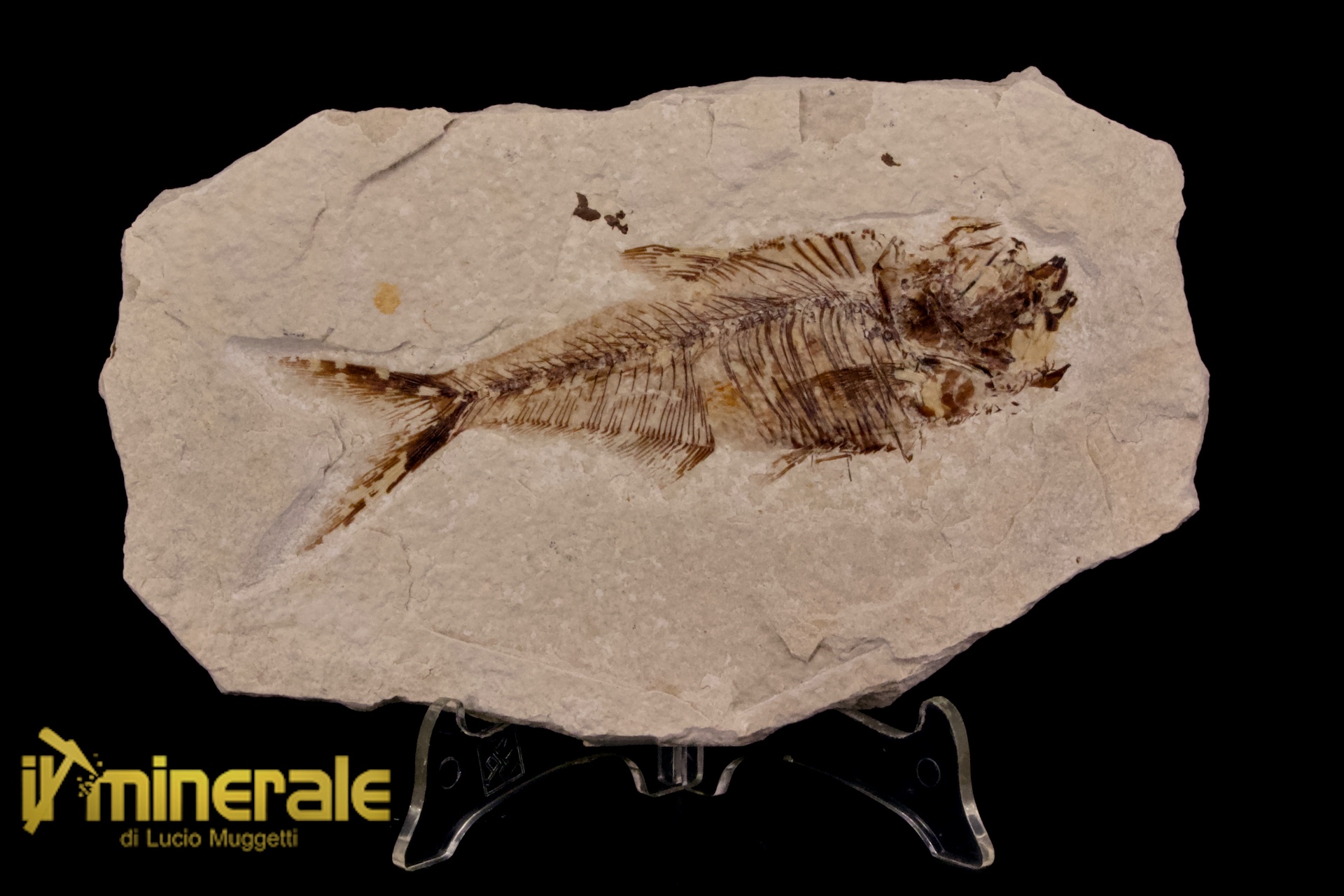 Pesce fossile "Diplomistus dentatus"; la lastra è intera, nessun restauro.