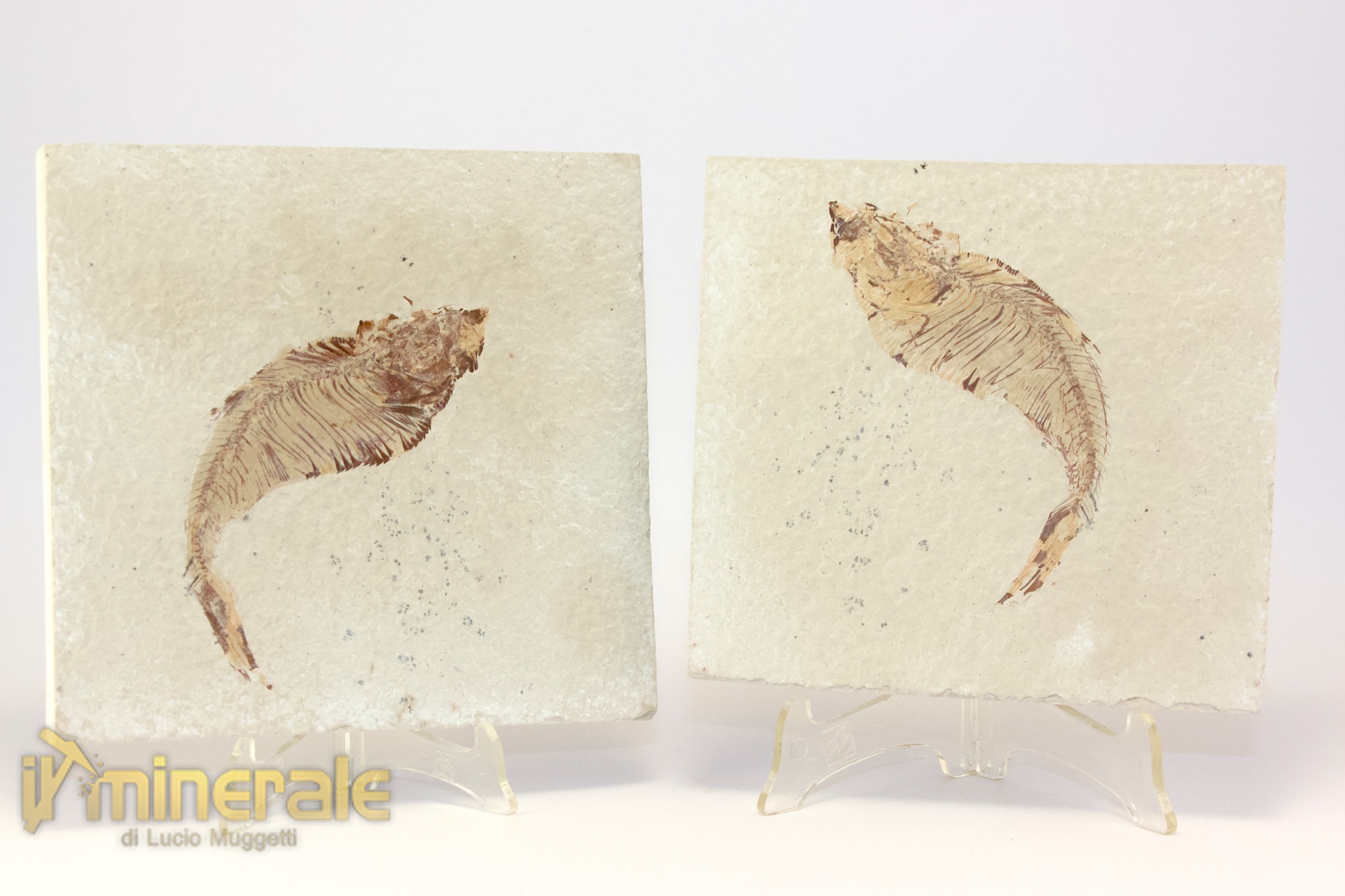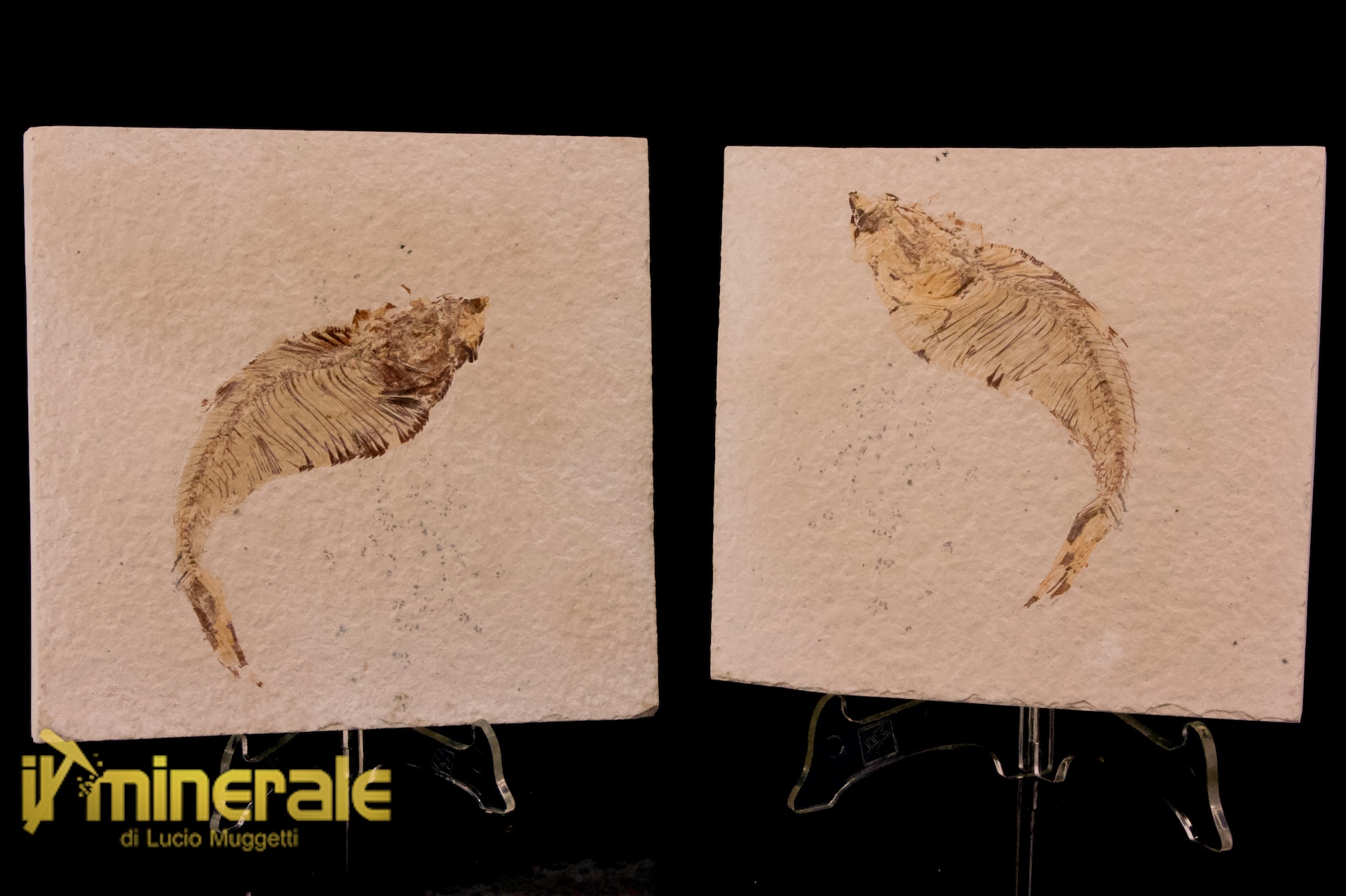 Pesce fossile "Diplomistus dentatus"; la lastre sono intere, nessun restauro.