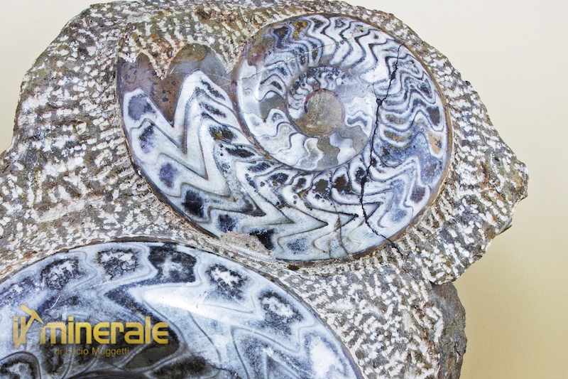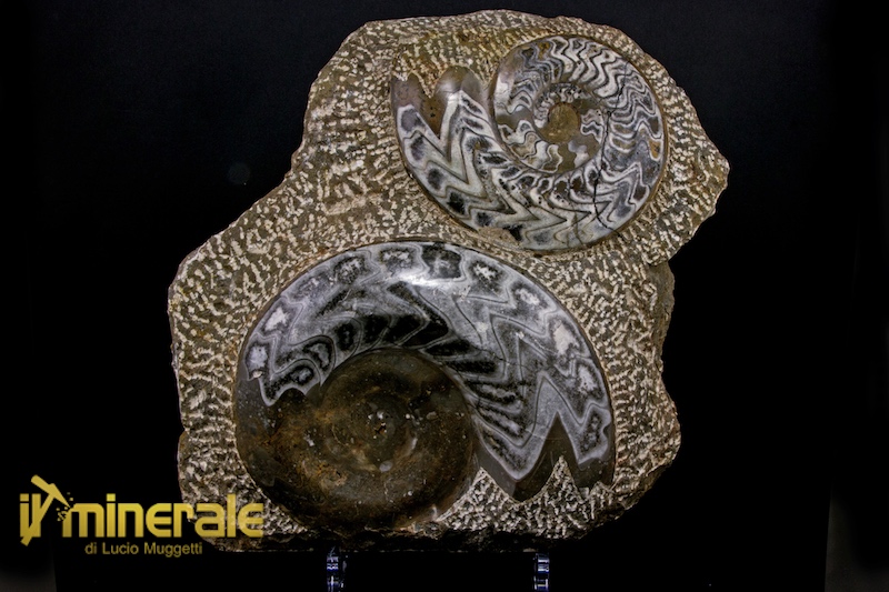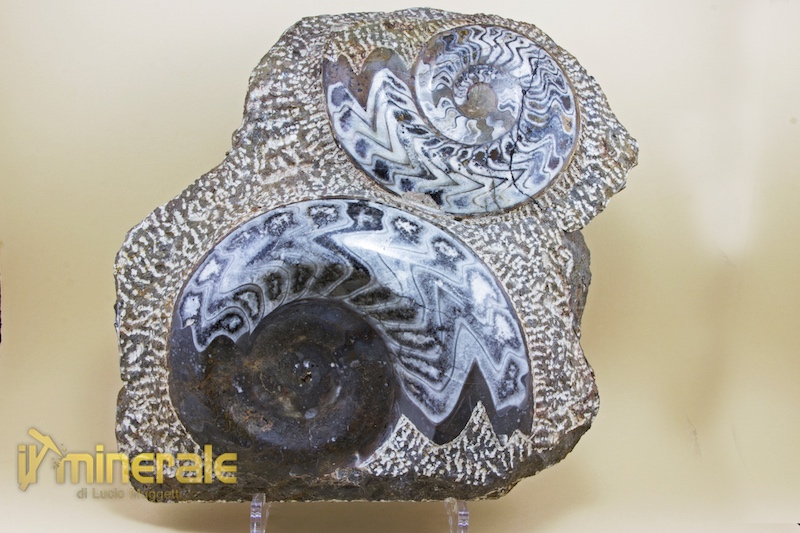 Ammonite "Gonioclymenia sp". Ammoniti lucidate su matrice, la lastra è ricomposta in due parti
