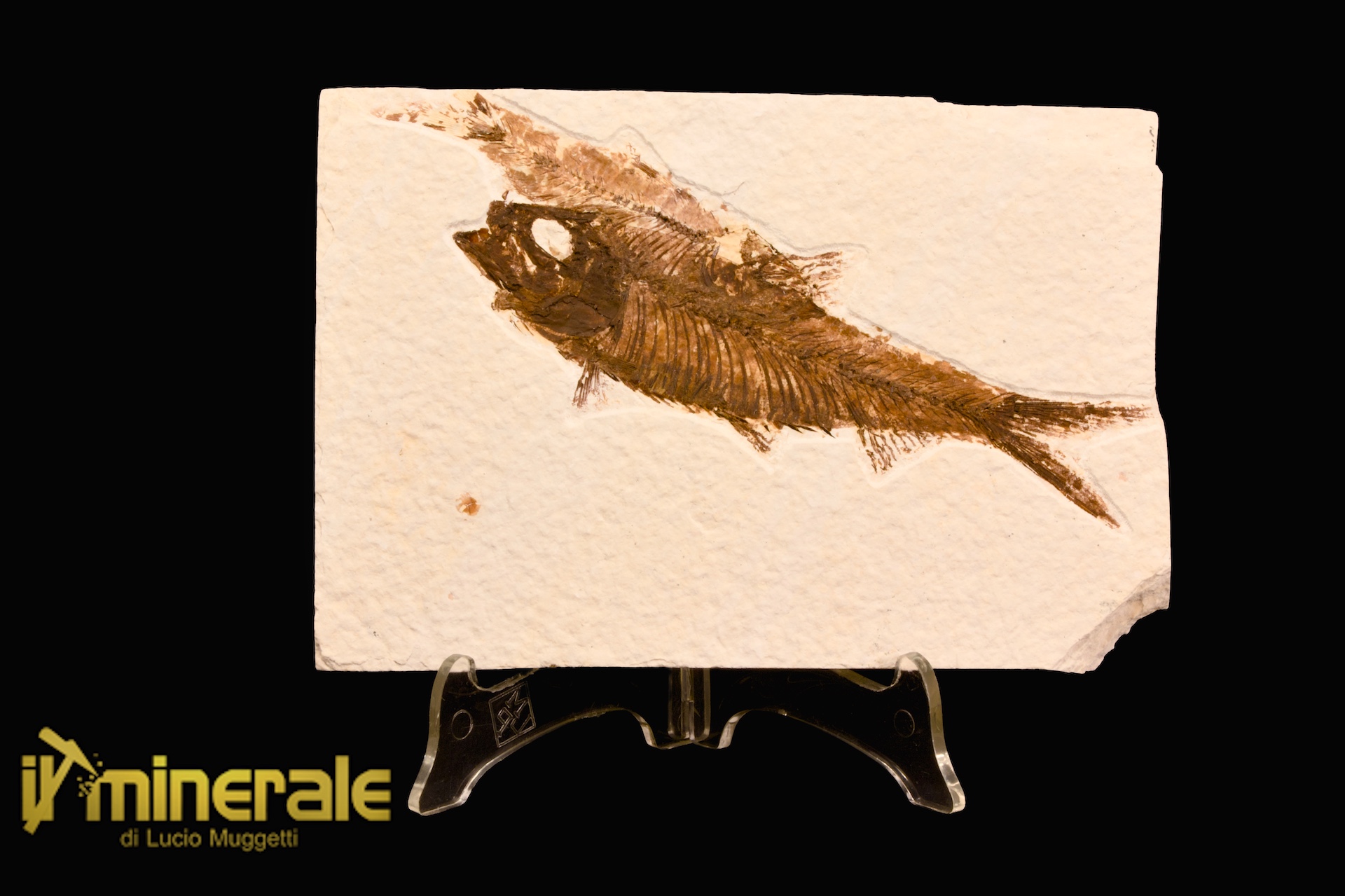 Pesce fossile "Knightia eocaena"; la lastra è intera, nessun restauro.