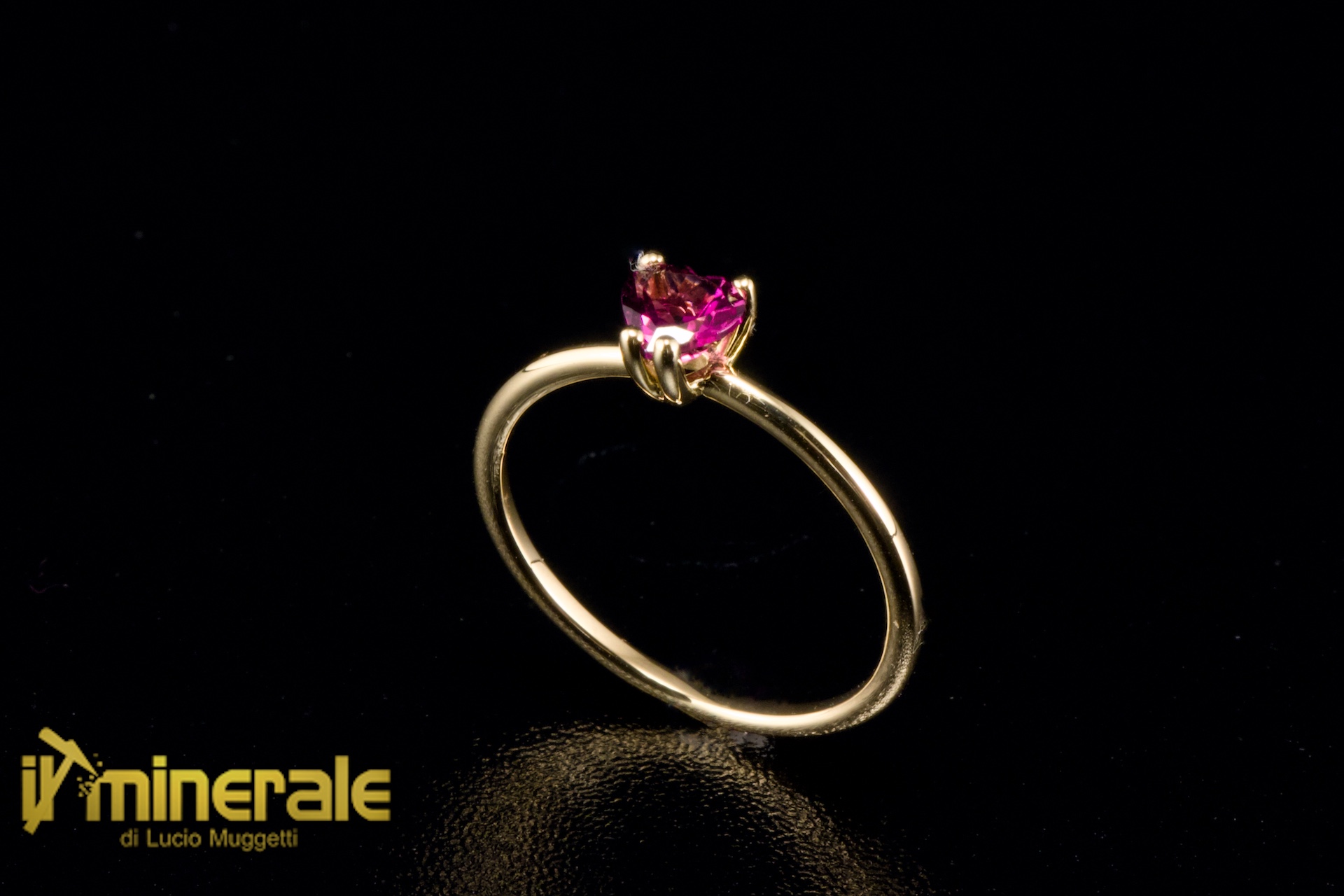 Anello in oro rosa 18 Kt con pietra sfaccettata a forma di cuore di granato (rodolite) del diametro di 5 mm e del peso di 0,50 ct