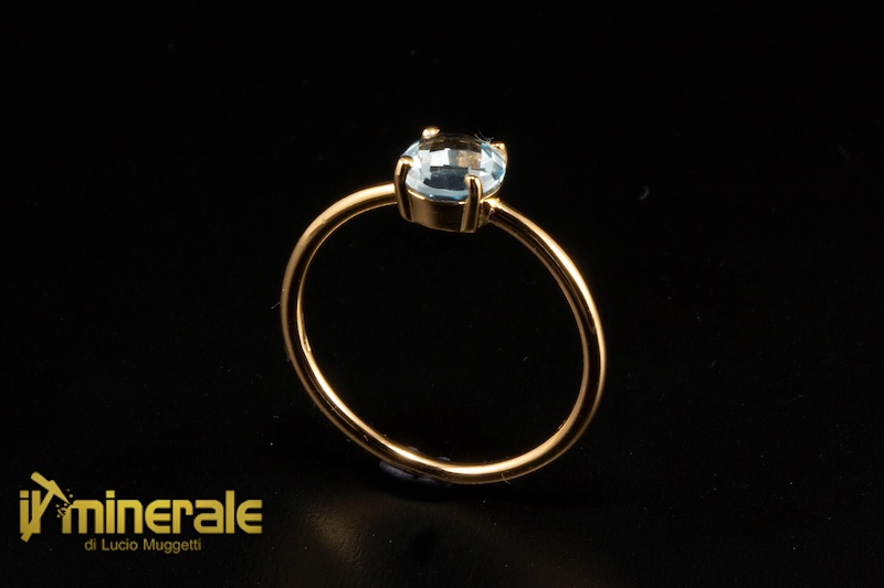 Anello in oro rosa 18 Kt con una briolette sfaccettata tonda di topazio azzurro del diametro di 6,00 mm