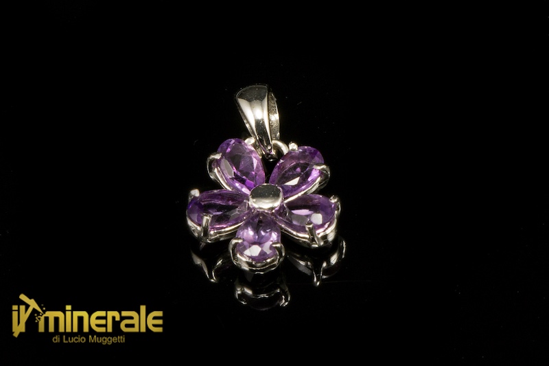 Ciondolo in oro bianco 18 Kt a forma di fiore compsto da piccole gocce sfaccettate di ametista