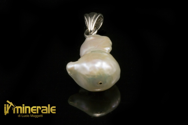 Ciondolo in oro bianco 18 Kt con una perla coltvata d'acqua dolce scaramazza (fireball) del peso di 16,25 Kt