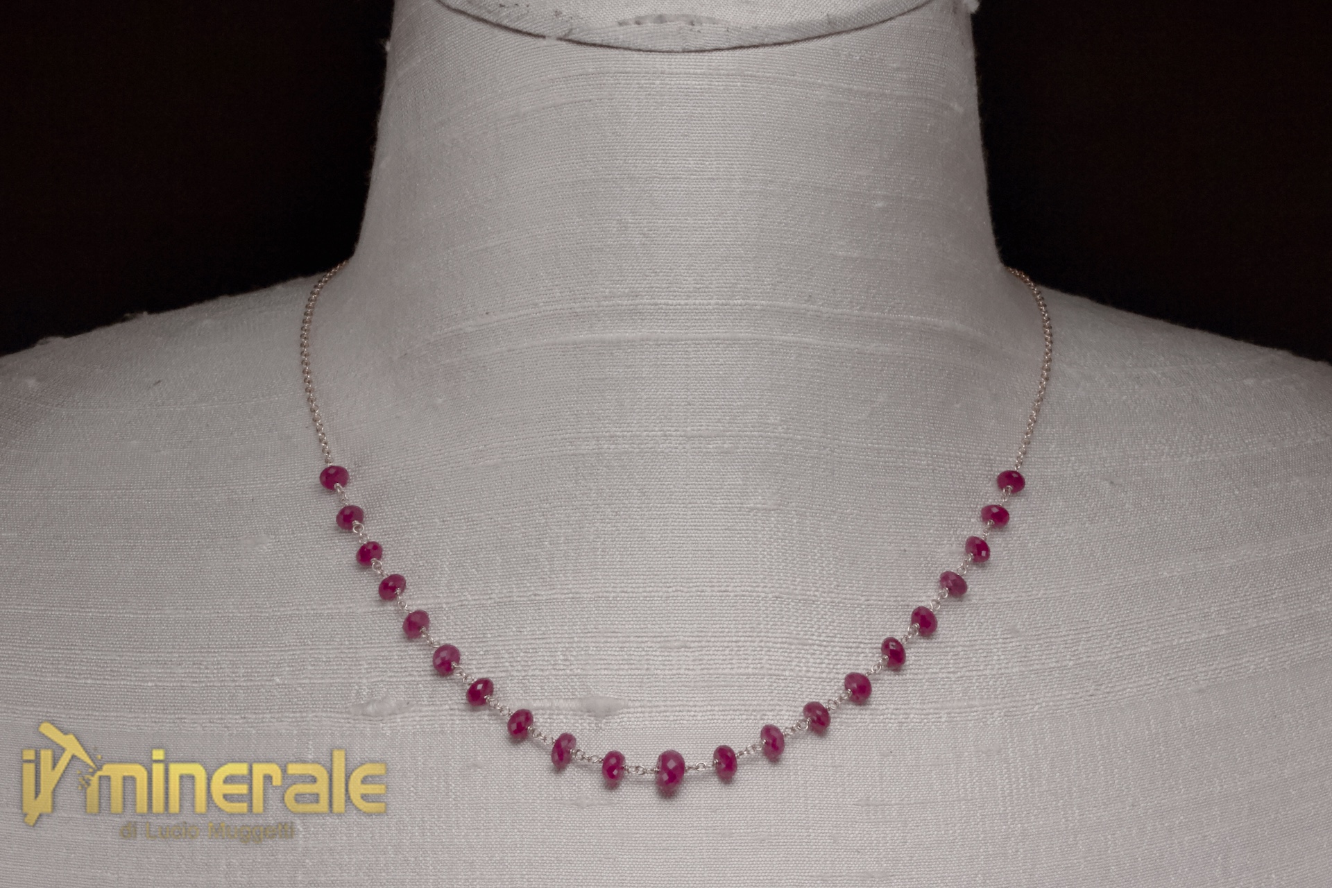 Girocollo in oro 18 ct con rondelle di rubino (le centrali hanno un diametro di5,5 mm) del peso totale di 10,60 ct