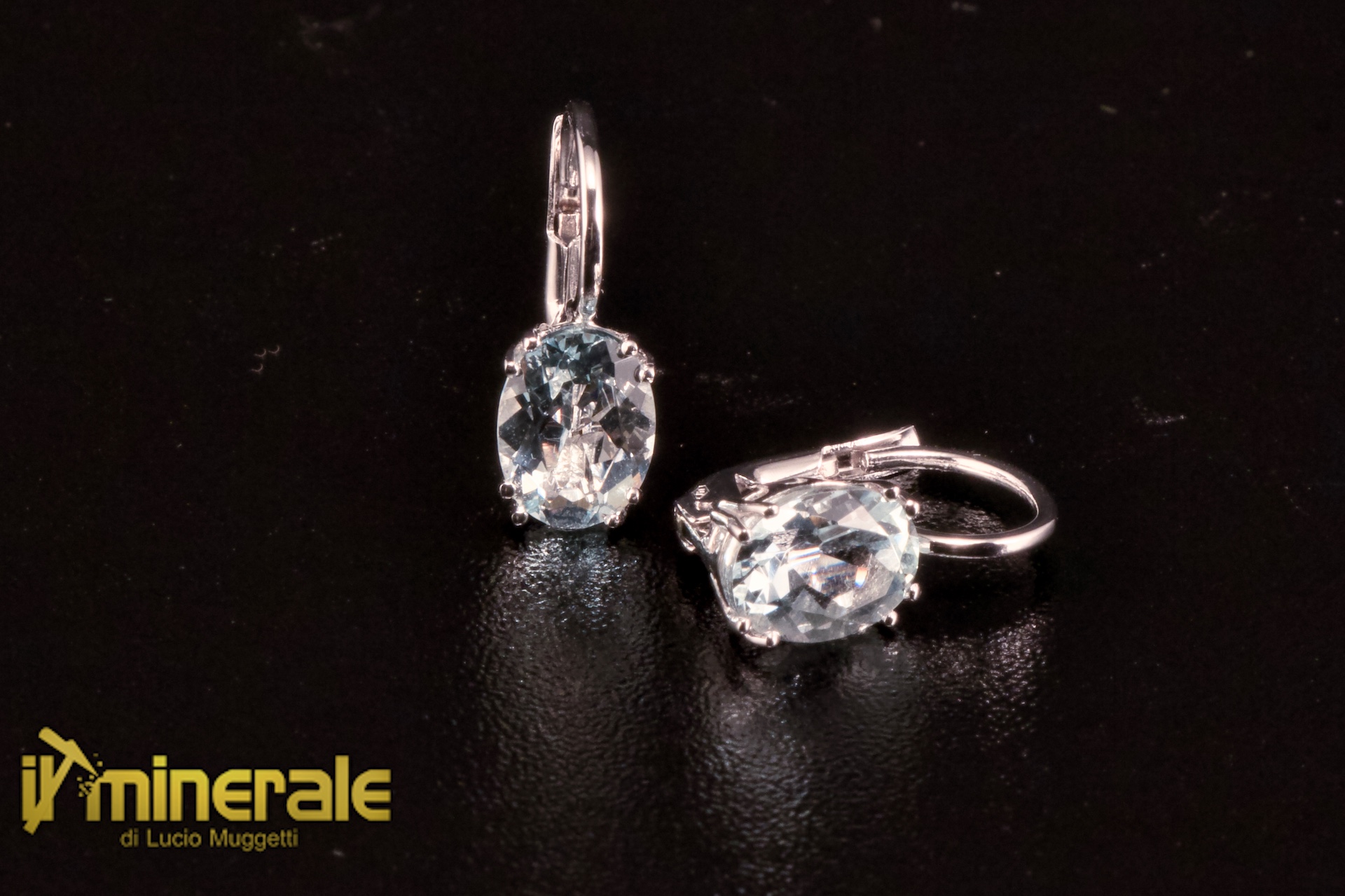 Orecchini a monachella in oro bianco 18 Kt con acquamarina taglio ovale della dimensione di 6x8 mm (peso 2,25 ct)
