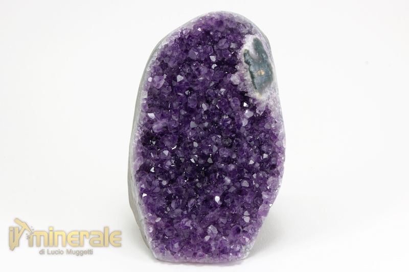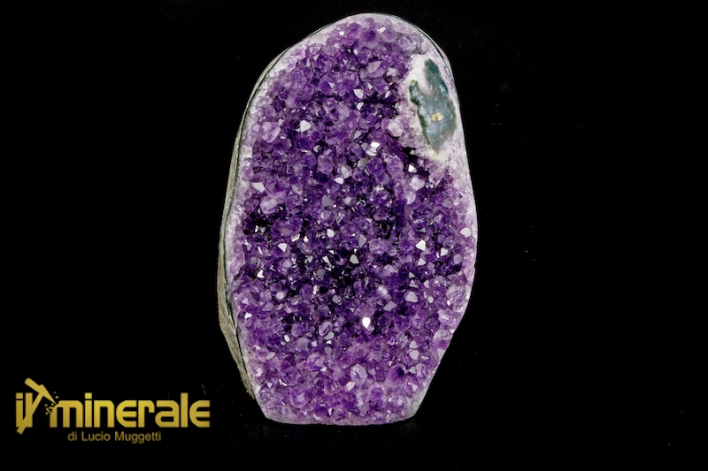 Ametista: drusa con cristalli sub-centimetrici trasparenti di colore viola chiaro, abito pseudo-esagonale e lucentezza vitrea