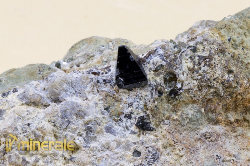 Anatasio: cristallo isolato (0,7 cm) di colore nero metallico e di abito bipiramidale pseudoottaedrico