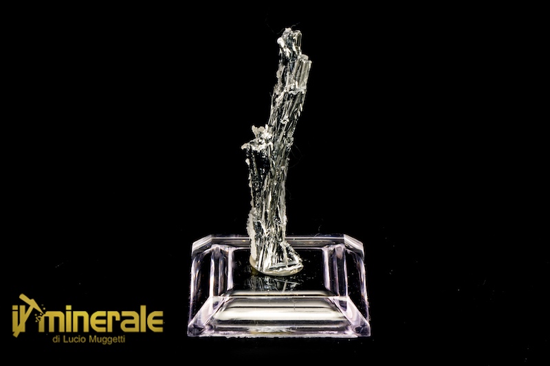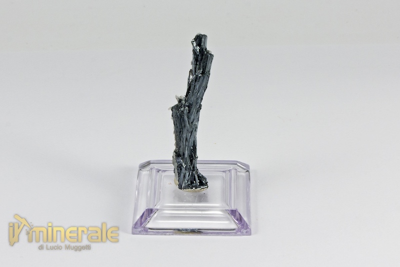 Cristalli prismatici allungati di colore grigio acciaio opaco con lucentezza metallica