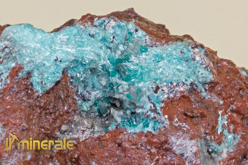 Millimetrici cristalli aciculari di colore azzurro su limonite