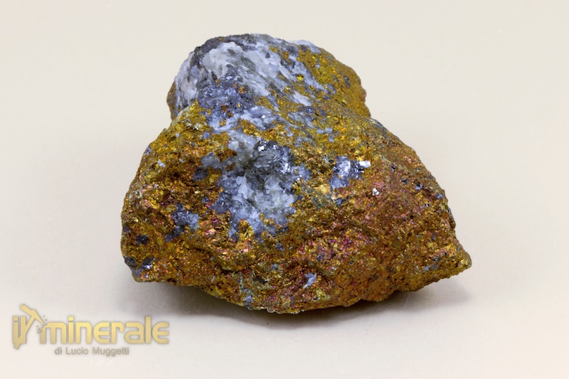Massa compatta ed opaca con lucentezza metallica di colore marrone chiaro con forte iridescenza con toni che vanno dal viola al blu elettrico al giallo oro