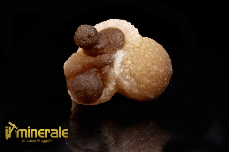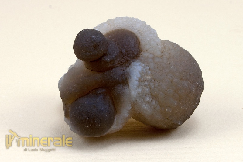 Aggregato microcristallino con morfologia semisferica e reniforme, la lucentezza è sericea e il colore va dal biancastro al bruno