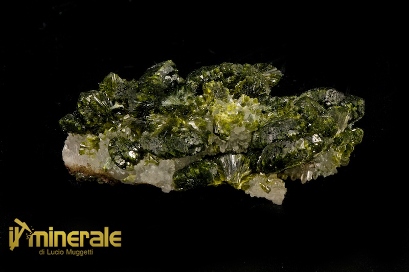 Fitta drusa di cristalli centimetrici e sub-centimetrici di Epidoto propriamente detto di colore verde scuro con lucentezza sericea