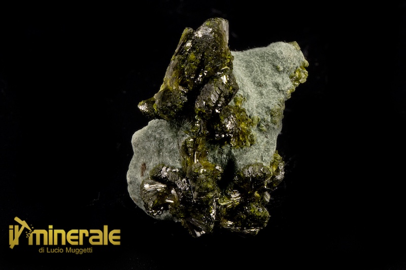 Fitta drusa di cristalli centimetrici e sub-centimetrici di Epidoto propriamente detto di colore verde scuro con lucentezza sericea