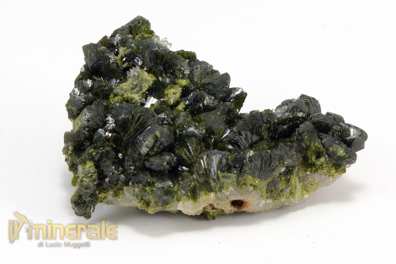 Fitta drusa di cristalli centimetrici e sub-centimetrici di Epidoto propriamente detto di colore verde scuro con lucentezza sericea