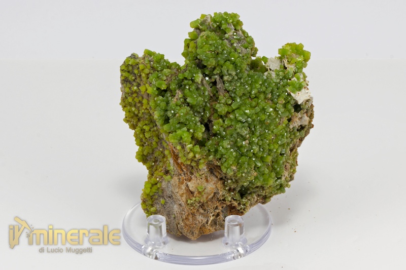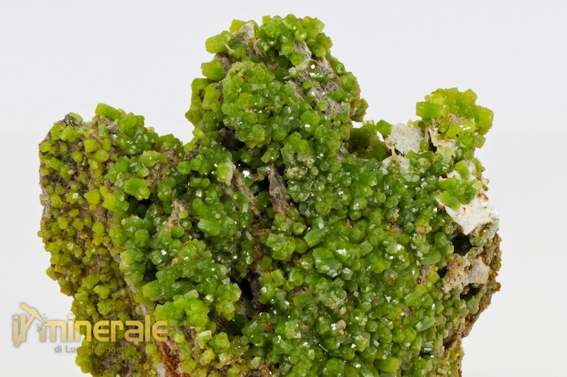 La piromorfite appartiene alla classe dei fosfati, gruppo dell'apatite. Il campione presenta cristalli da millimetrici a sub-centimetrici di abito prismatico esagonale di colore verde intenso e lucentezza sericea