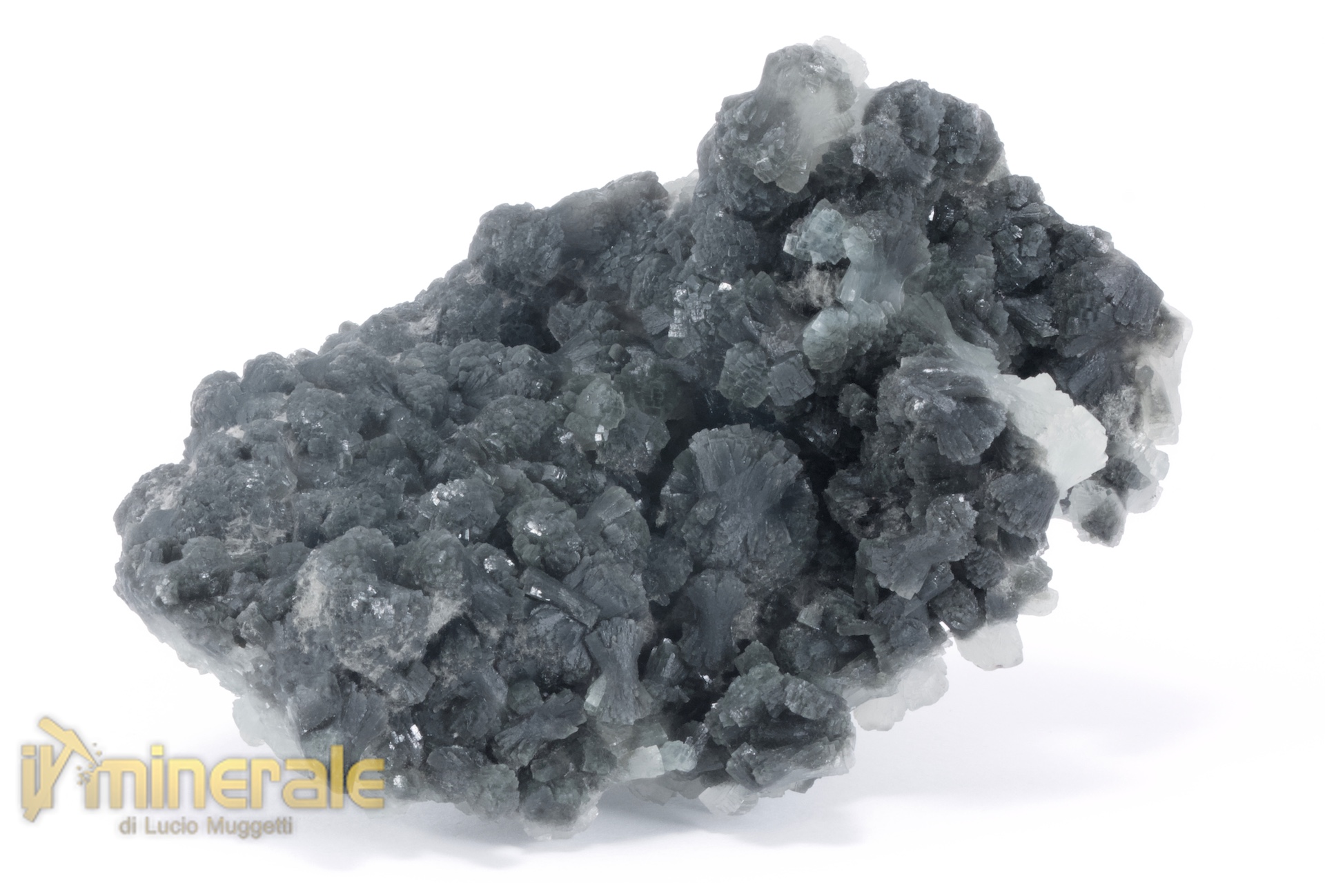 Prehnite: cristalli di colore verde chiaro centimetrici e sub-centimetrici fortemente appiattiti e riumiti in aggregati di varie forme