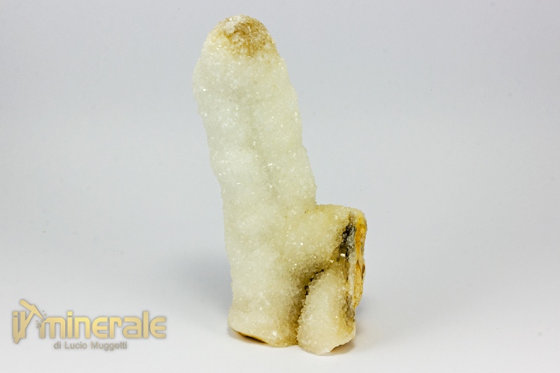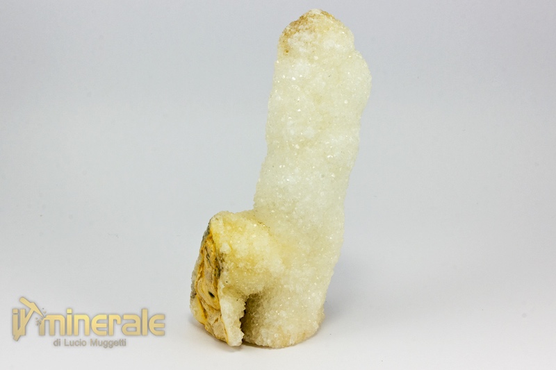 Cristalli millimetrici di quarzo ialino che rivestono concrezioni stalattitiche di quarzo compatto