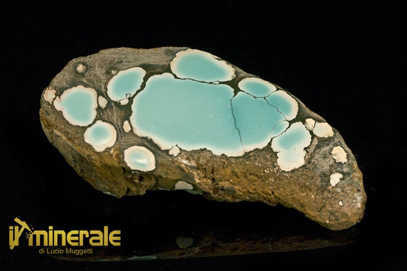 Lastra tagliata e lucidata con noduli di turchese naturale su matrice