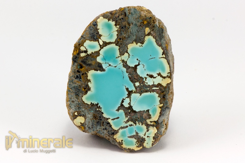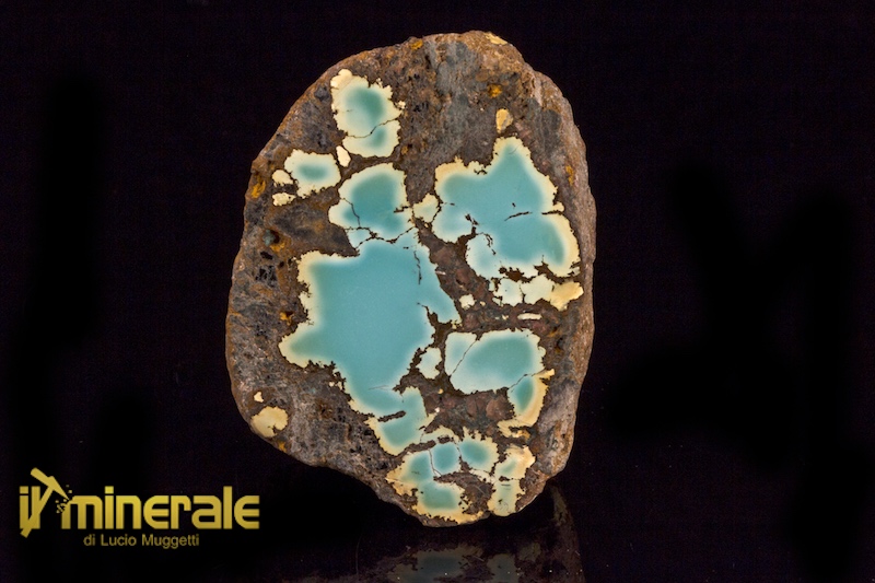 Lastra tagliata e lucidata con noduli di turchese naturale su matrice