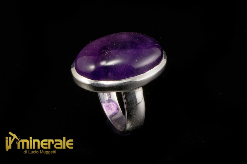 Anello in argento 925 rodiato con un cabochon ovale di ametista della dimensione di 17x24 mm