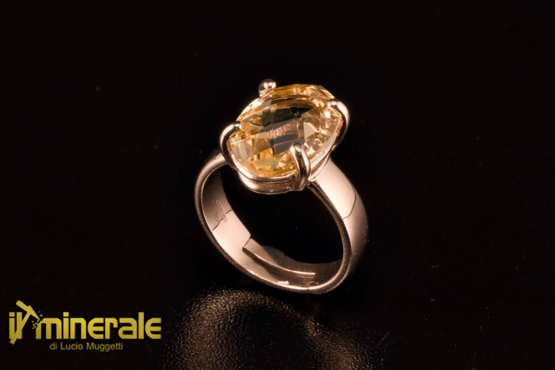 Anello in argento 925 placcato oro rosa con una briolette sfaccettata ovale (10x14 mm) di quarzo citrino