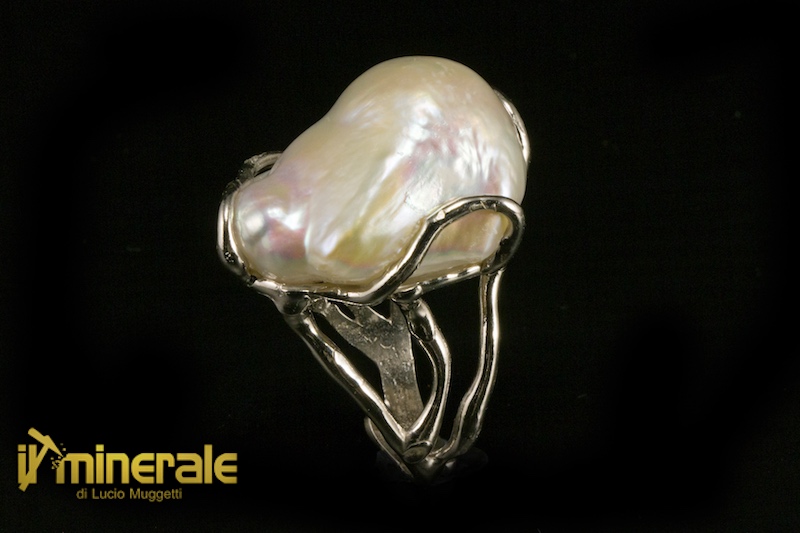Anello in argento 925 rodiato con una perla coltivata d'acqua dolce scaramazza "fireball" della dimensione di 19,5x28 mm
