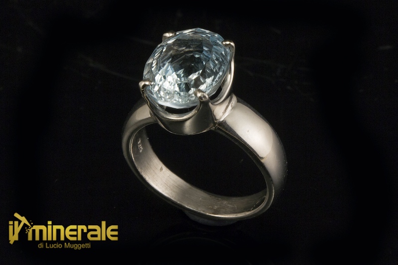 Anello in argento 925 rodiato con una pietra sfaccettata ovale (10x12) taglio laser di topazio azzurro