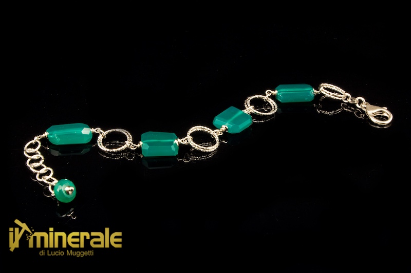 Bracciale incatenato in argento 925 rodiato con 4 elementi irregolari di agata verde sfaccettata a laser (gli elementi centrali misurano circa 14x12 mm)