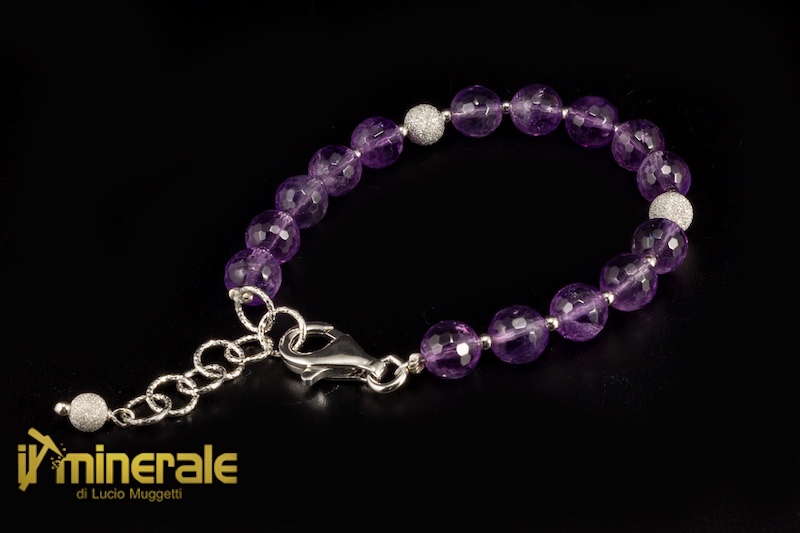 Bracciale con sfere sfaccettate di ametista del diametro di 8 mm