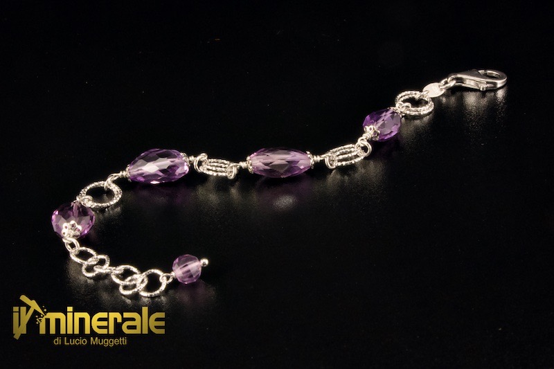 Bracciale incatenato in argento 925 rodiato con 4 ovali sfaccettati di ametista della dimensione di circa 15x10 mm (i più grandi)