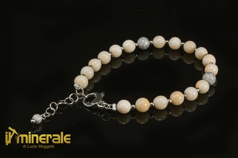 Bracciale composto da sfere di corallo rosa chiaro del diametro di 6 mm