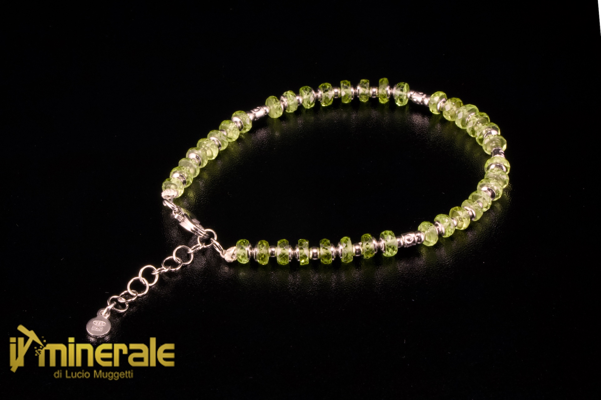Bracciale con rondelle sfaccettate di peridoto (olivina) della dimensione di 4,5 mm