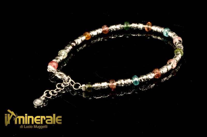 Bracciale con rondelle sfaccettate di tormalina di diversi colori del diametro di circa 4,5 mm
