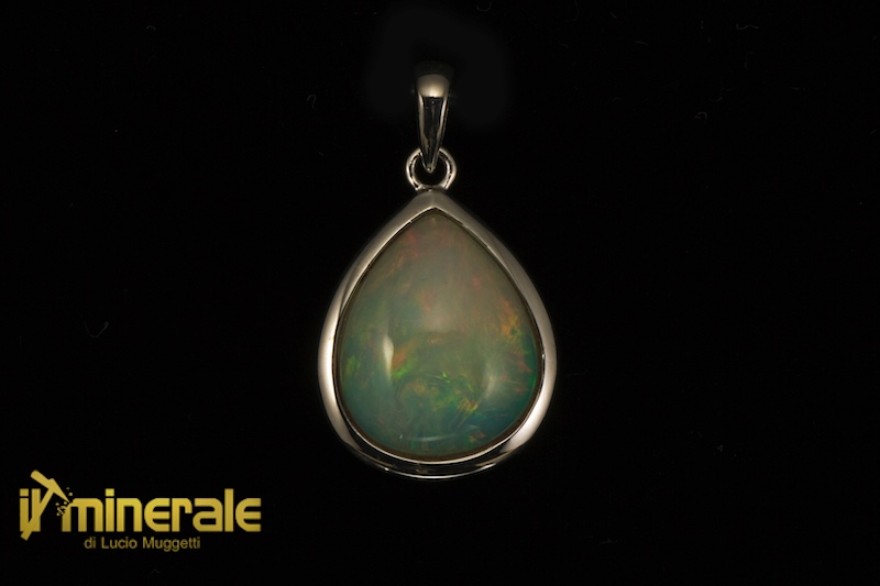 Ciondolo con un cabochon a forma di goccia di opale nobile della dimensione di 16x19 mm