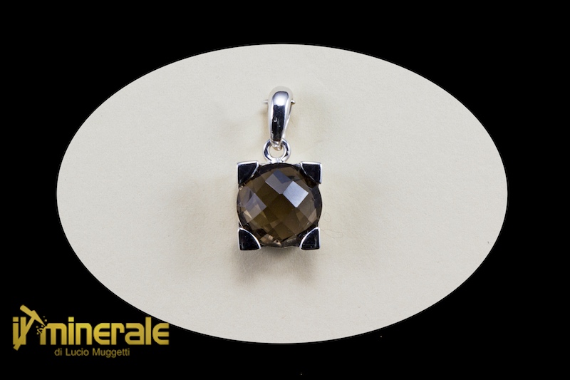 Ciondolo con una briolette tonda sfaccettata di quarzo fumè del diametro di 10 mm