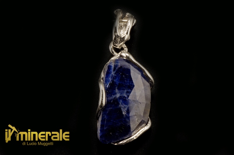 Ciondolo con piastra sfaccettata di corindone naturale varietà "zaffiro" non trasparente