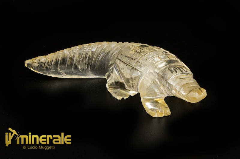 Alligatore in quarzo citrino, trasparente e di colore molto chiaro