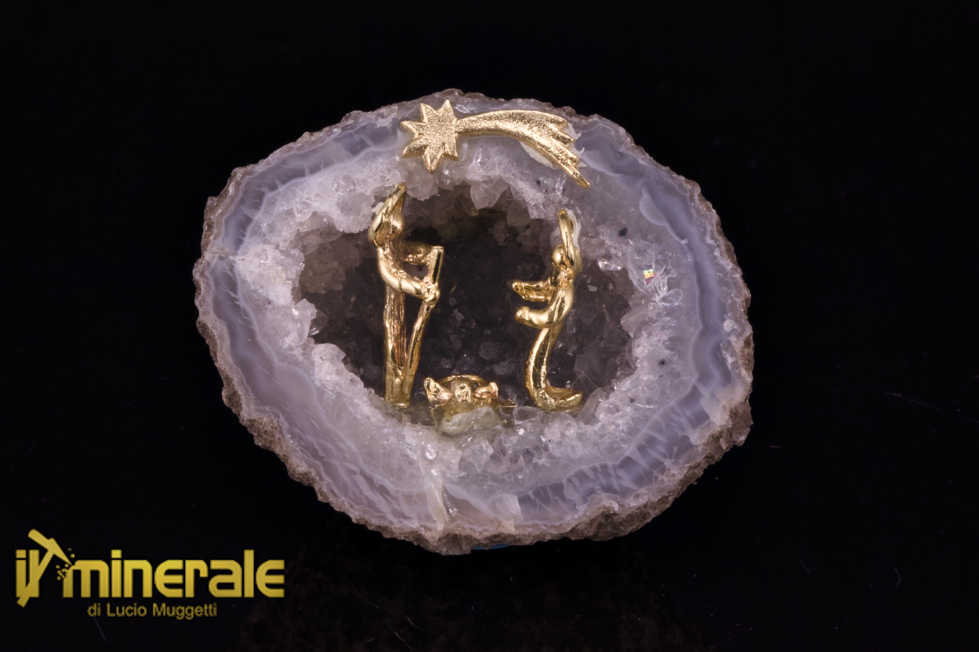 Presepe in geode di agata e quarzo