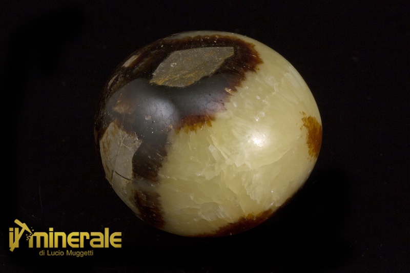 Ciottolo in septaria con venature di calcite gialla della dimensione di 3,8x3,7x3,3 cm