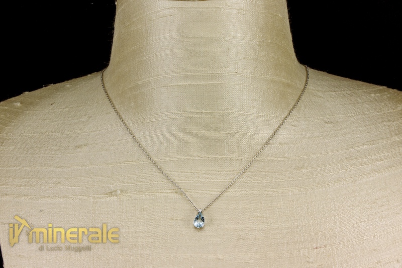 18 Kt white gold necklace with drop-shaped aquamarine pendant with a Size of 5x7 mm and brilliant (0.02 Kt)