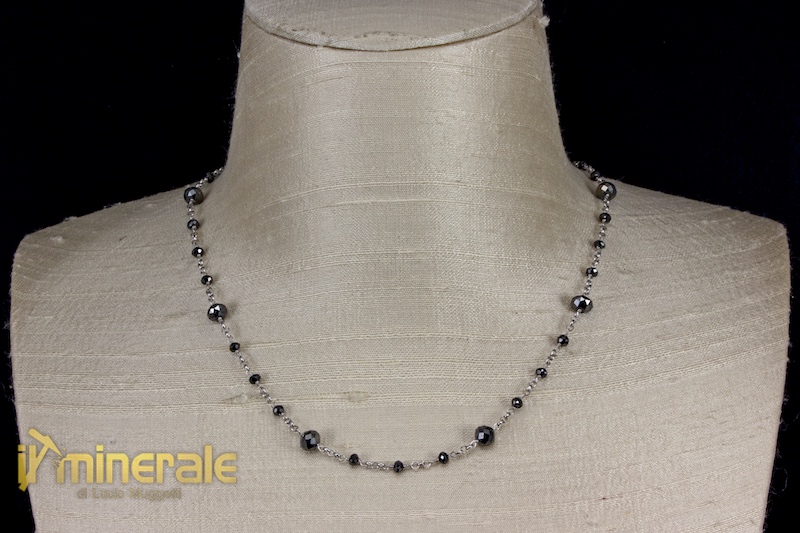 18 Kt white gold necklace with faceted black diamond washers with a diameter from 3.3 to 5.5 mm and a total weight of 14.95 Kt