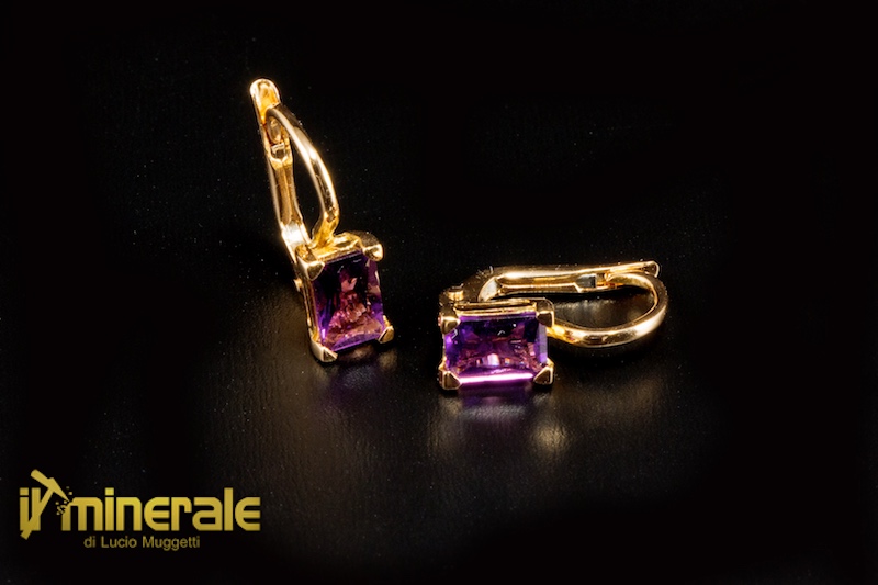 18 Kt rose gold hook earrings with faceted octagonal amethyst stones measuring 6x4 mm < /p>