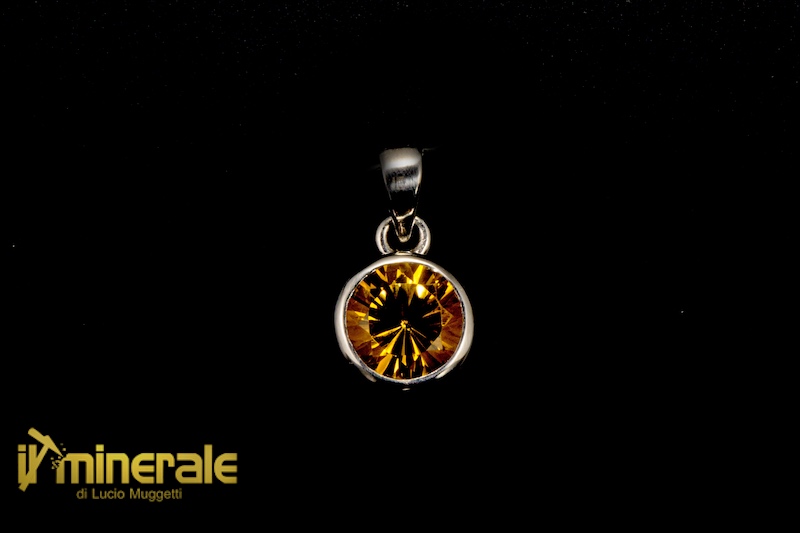 Pendant with a round faceted laser cut citrine quartz gem (diameter 10 mm)