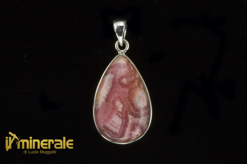 Pendant with a rhodochrosite drop cabochon measuring 19x29 mm
