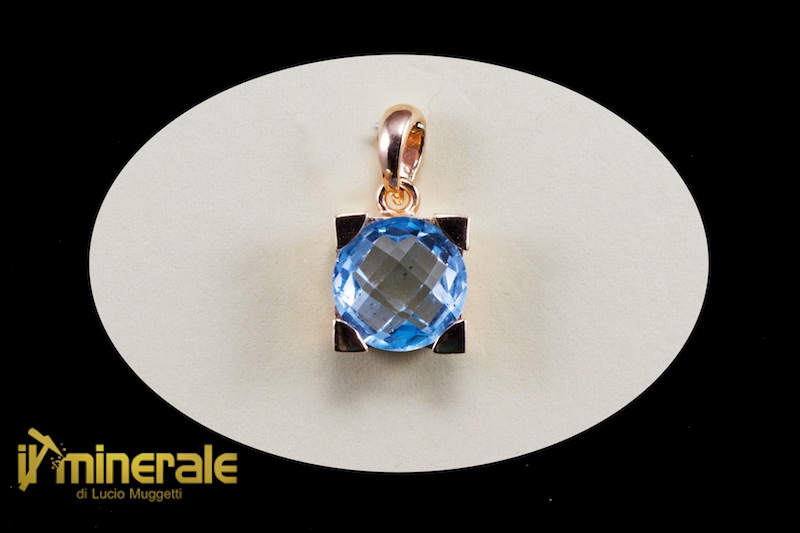 Pendant with a round faceted briolette of blue topaz with a diameter of 10 mm