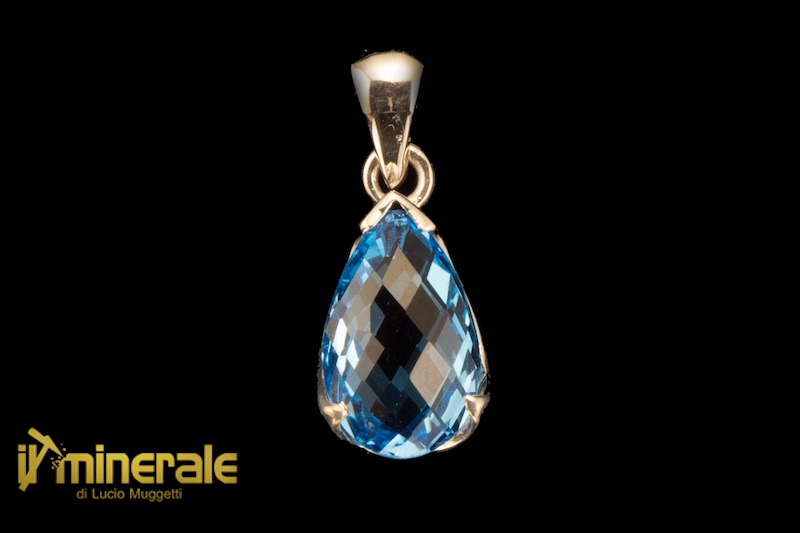Pendant with a faceted drop-shaped briolette of blue topaz (London Blue quality) measuring 10x16 mm