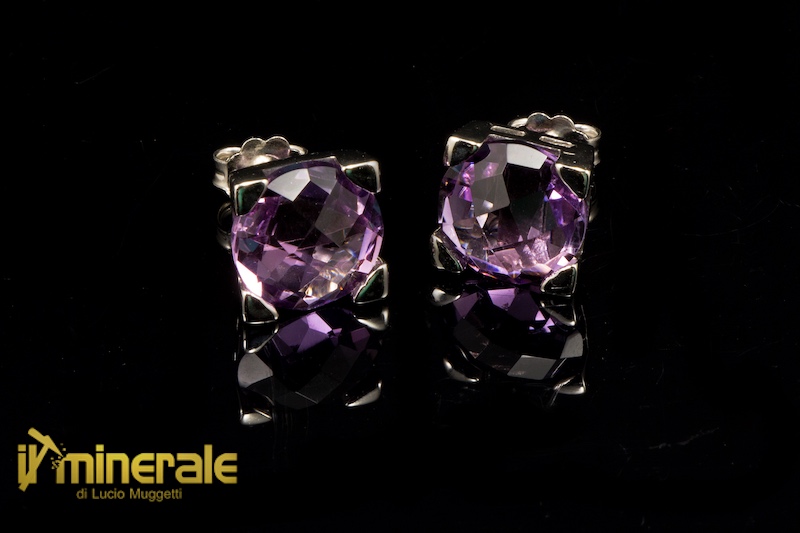 Snap earrings in rhodium-plated 925 silver with round faceted amethyst briolette with a diameter of 10 mm